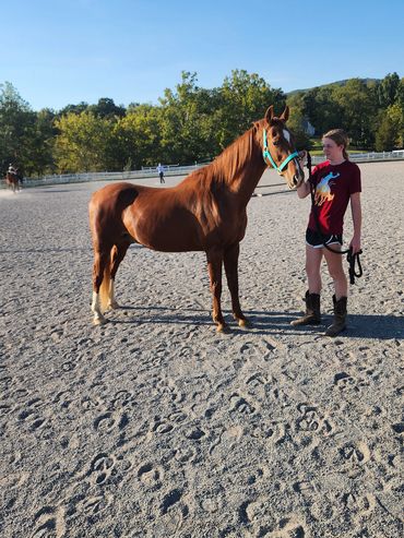 Hello there! My name is Angela Easter, and I have the privilege of being the barn manager at Hoge Farm Stables. I have been around horses for over 20 years. I grew up around horses and fell in love with them instantly. I take great pride in giving each horse the best care that I would want and expect for my own horses and hold the staff to the same standards. I enjoy being around all types of horses, but I have to say my heart is with the Quarter Horses and love riding a nice easy Western Pleasure jog and lope.